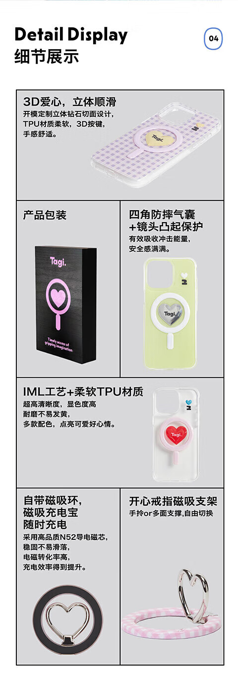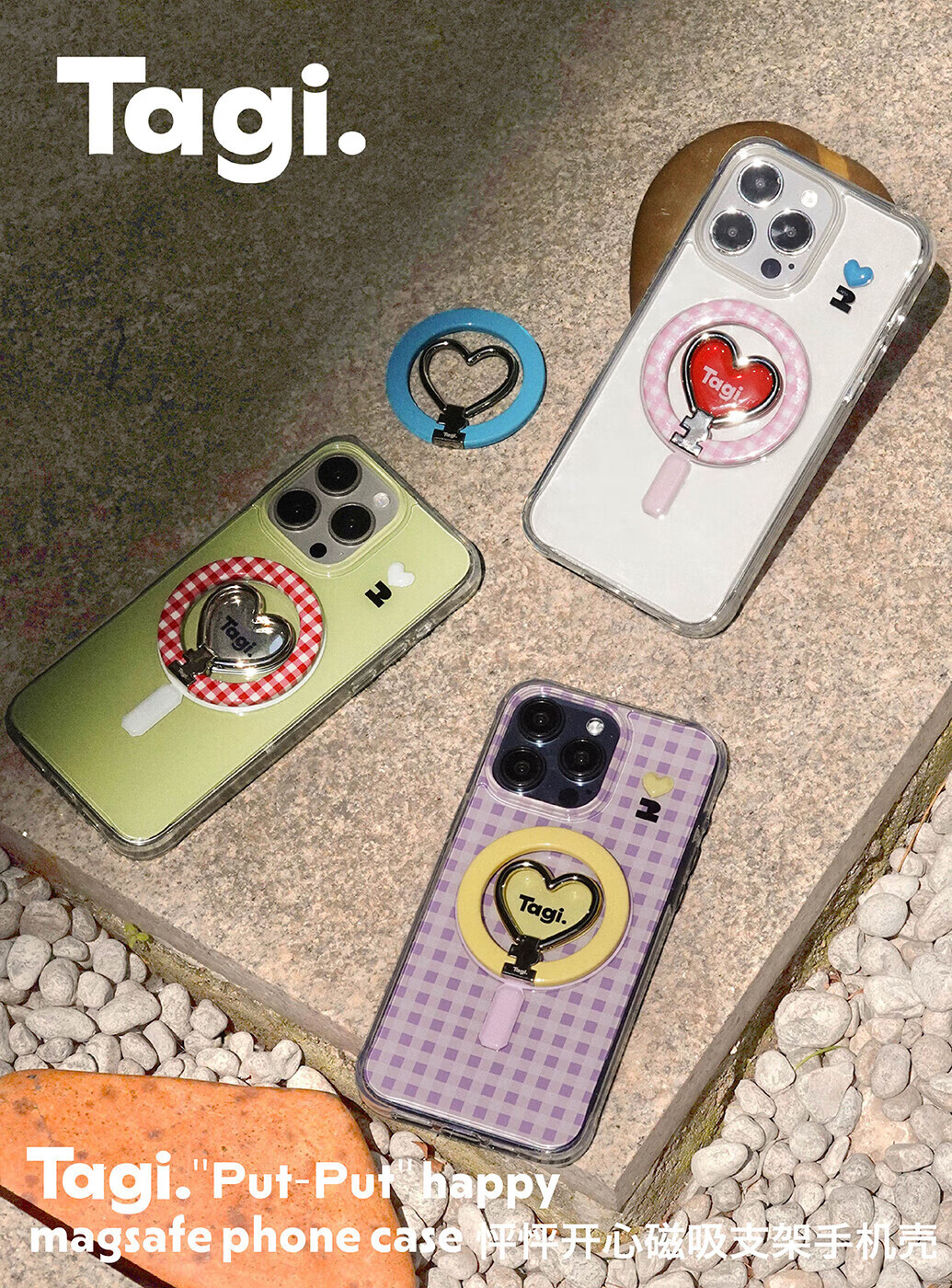 Tagi.怦怦开心3d磁吸戒指支架手机壳可爱时尚全包防磨苹果手机壳适用iPhone17节日礼物-莓果寒天