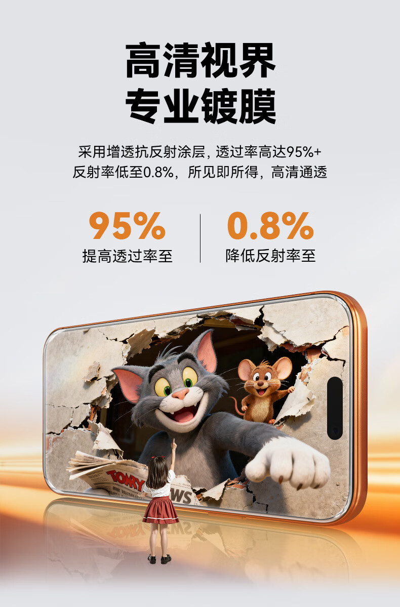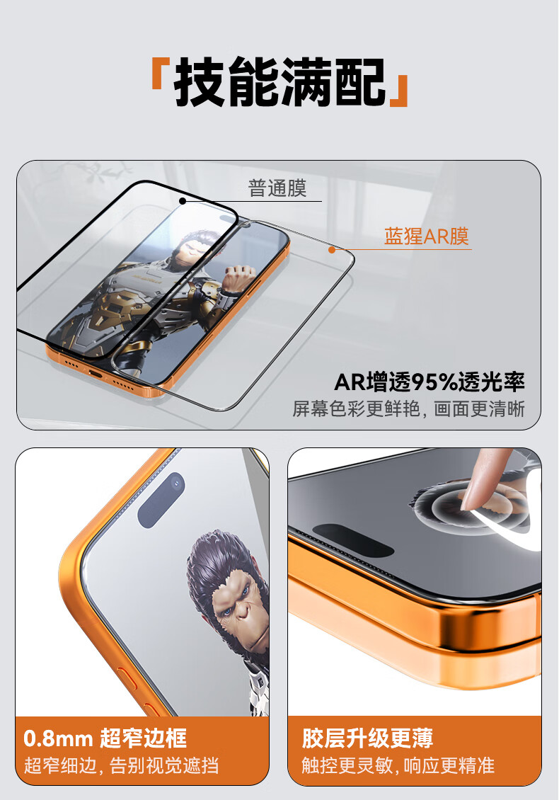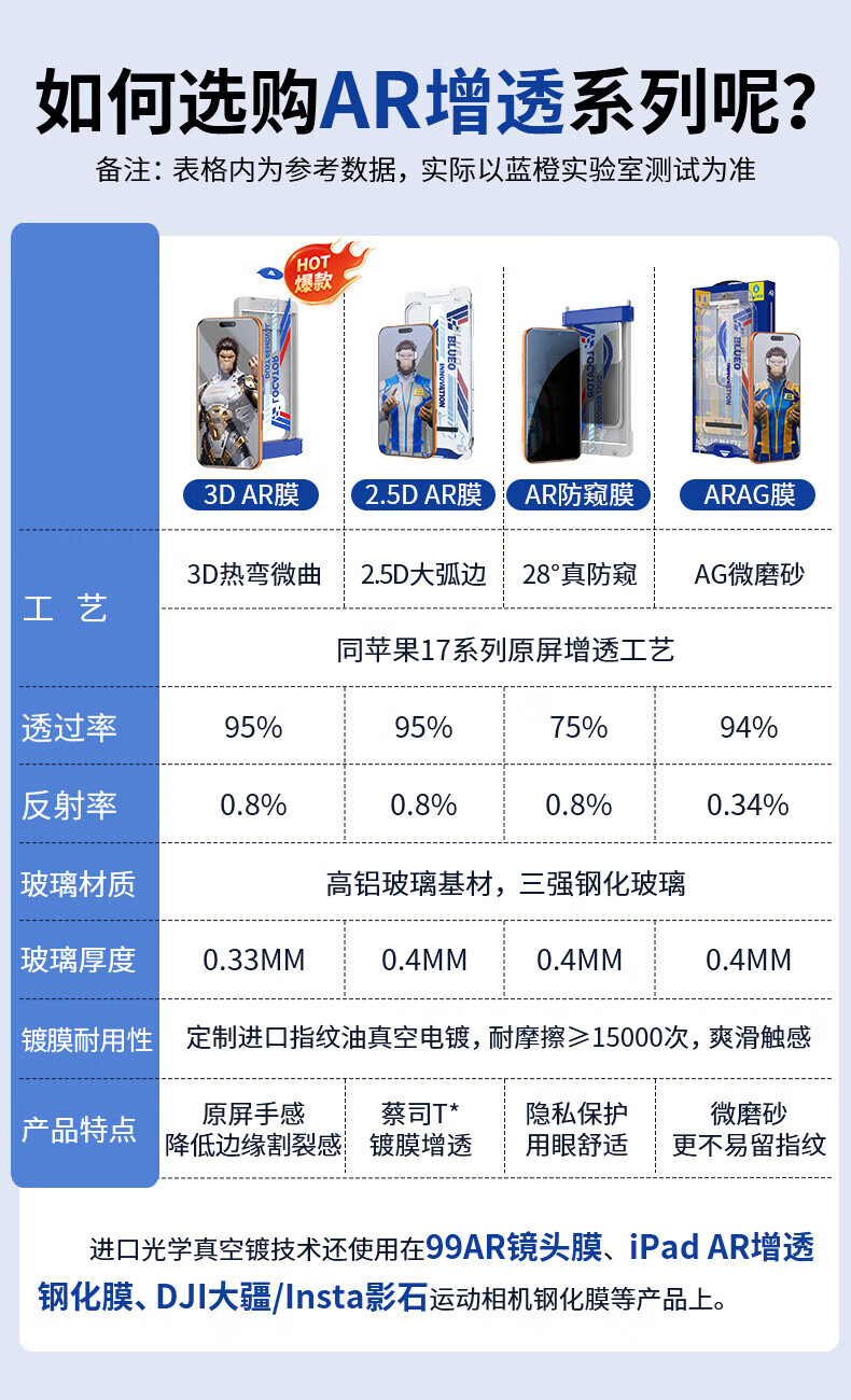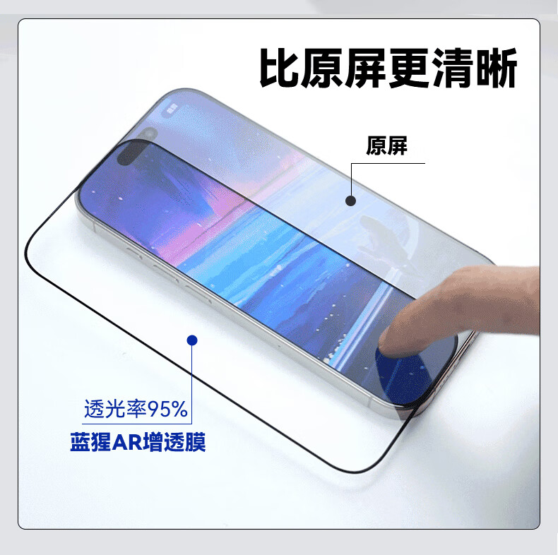 BLUEO适用苹果17Pro钢化膜 iPhone17pro手机膜无尘仓AR增透高清透防摔抗指纹手机保护膜