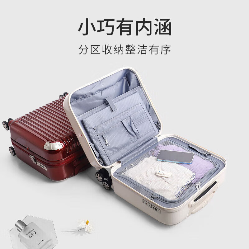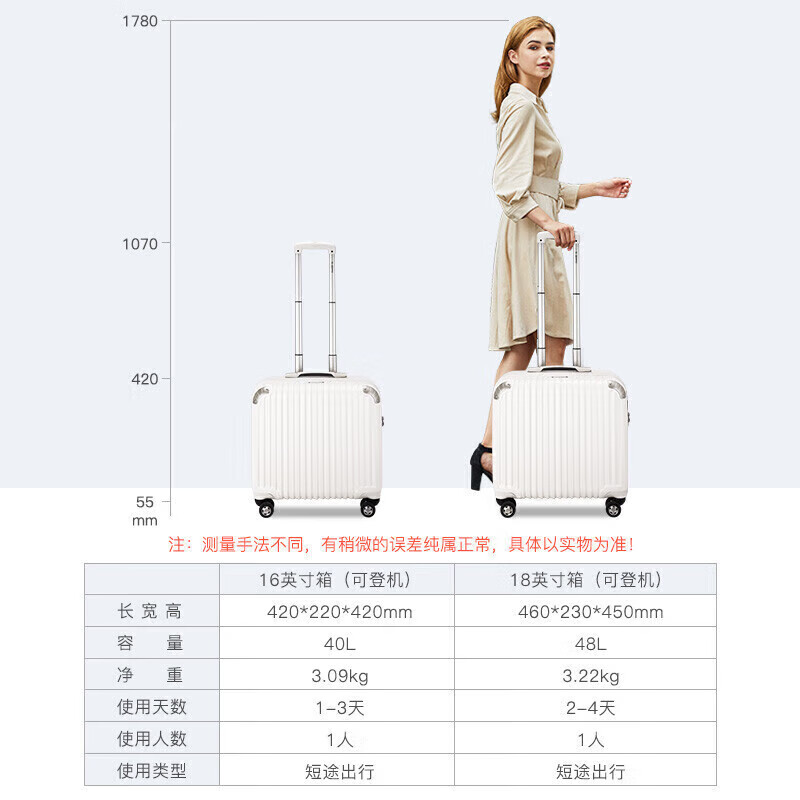 莎米特行李箱小型儿童拉杆箱男女通用旅行箱可登机箱PC338TC18英寸米白