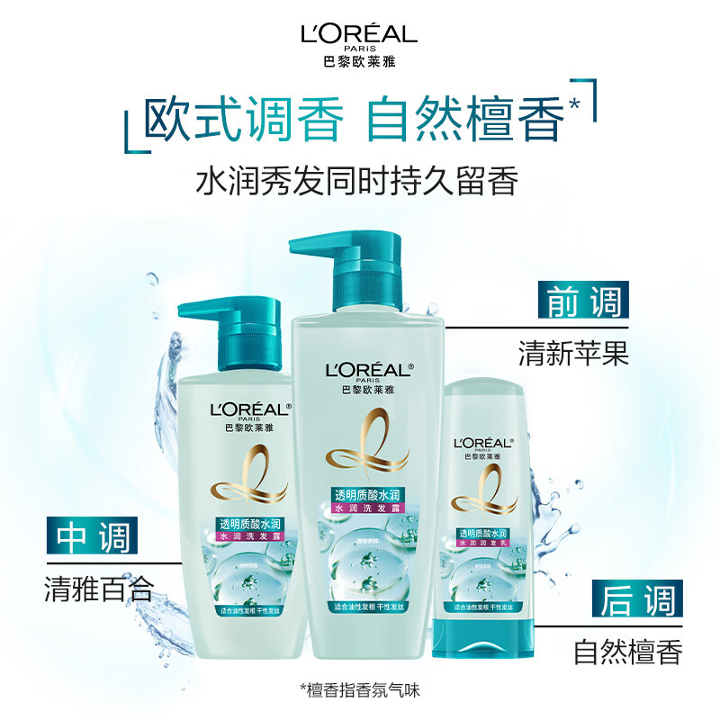欧莱雅透明质酸水润润发乳无硅油护发素200ml(新老包装随机发货)